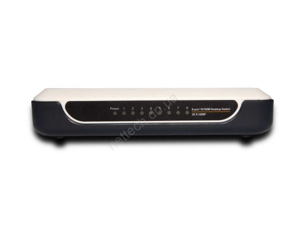 3K S-1008P - некерований комутатор, служить для підвищення ефективності мережі. Застосовується в SOHO мережах і характеризується хорошими показниками продуктивності і працездатності. У описуваному пристрої підтримується технологія store-and-forward. Комутатори SAF - одні з найскладніших і вдосконалених пристроїв. Основна їх особливість в повному буферізуванні у внутрішній буферній пам'яті FIFO всіх пакетів, які ретранслюються. Розглянутий комутатор налічує 8 портів 10/100M RJ45. Загальна пропускна здатність комутатора становить 1,6 Гбіт/с. Цей пристрій виготовлено на базі чіпа - Realtek RTL8309N. У 3K S-1008P передбачена можливість як настільної установки, так і настінного кріплення.