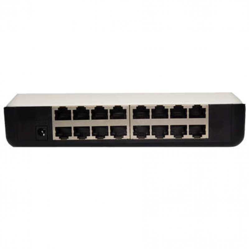 Комутатор зроблений з міцного пластику, в корпусі пристрою є роз'єми для кріплення на стіну. В апараті є 16 портів, розрахованих на підключення до них призначених для користувача пристроїв. У портах відбувається автоматична ідентифікація обладнання, що підключається і визначається необхідний режим роботи (half-duplex або full-duplex) і необхідна швидкість передачі даних (10 Мбіт/с або 100 Мбіт/с). Діодні індикатори, що знаходяться на корпусі пристрою вказують поточний режим пристрою.