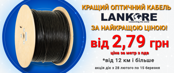 Найвигідніша пропозиція на ринку! Оптичний кабель Lankore за найкращою ціною - від 2,79 грн з ПДВ за метр!