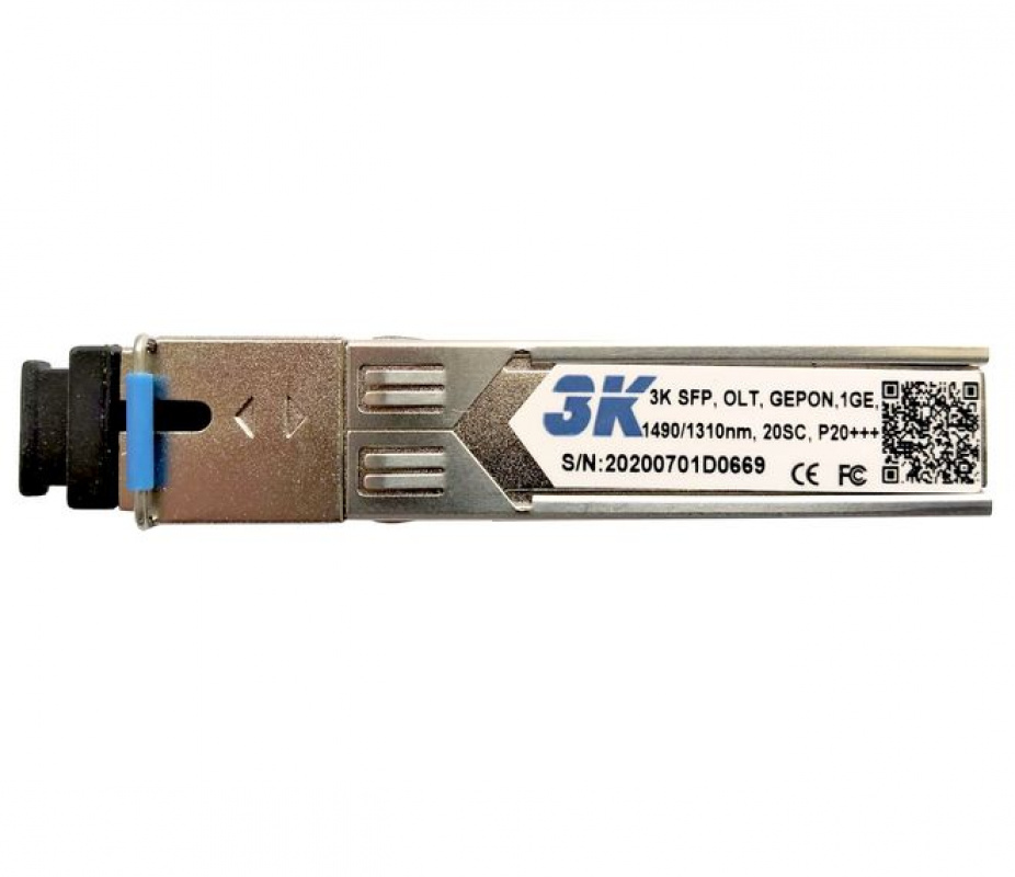 Модуль оптичний 3K SFP-OLT-GEPON-1GE-1490 / 1310nm-20SC (P20 ++) - це GPON трансивер у формфакторі SFP модуля для OLT пристроїв PON мереж. За допомогою такого модуля по одному волокну в PON мережі відбувається прийом-передача даних зі швидкістю 1,25 Гбіт / с на дистанцію до 20 км.