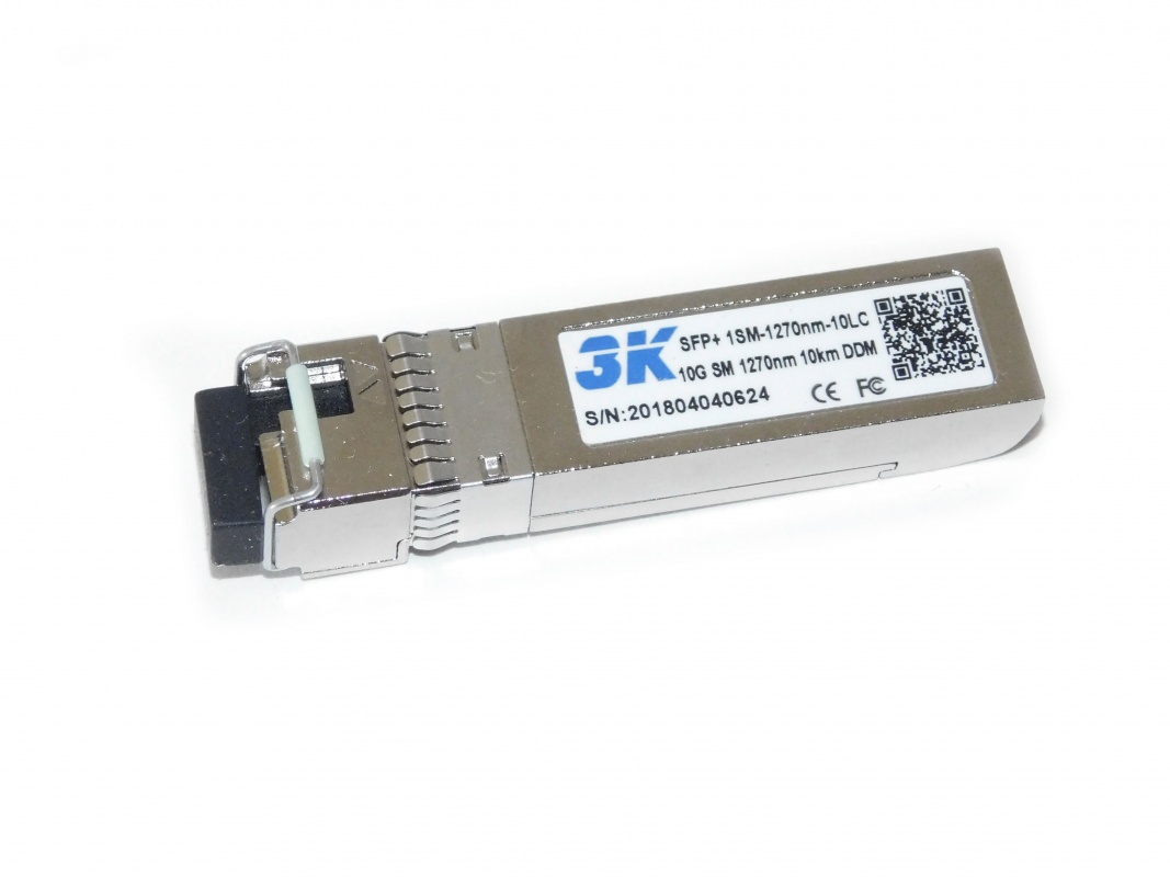 Оптичний трансивер 3K SFP + 10G-1SM-1270nm-10LC - 10G модуль. "SFP +" - означає, що даний пристрій має швидкість передачі даних в 10 Гбіт / сек. Завдяки технології WDM використовується всього одне волокно для передачі / прийому інформації шляхом рознесення потоків на різні довжини хвиль. Даний модуль - прекрасне рішення для здійснення передачі даних на дистанції до 10 км або модернізації (збільшення пропускної здатності) старих гігабітних ліній зв'язку. Трансівер виготовлений у відповідності зі стандартами і рекомендаціями SFF-8472 Multi-Source Agreement (MSA), Bellcore TA-NWT-000983, IEC60825-1, IEEE802.3Z. Також 3K SFP + підтримує функцію DDM.