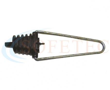 Затискач натяжний Sofetec Н3 для круглого кабелю. Анкерний натяжний затискач призначений для швидкого закріплення самонесучих оптичних кабелів круглого перетину від 5 до 7 мм, ADSS кабелів. Кріпиться за петлю до траверс, крюків, кронштейнів.